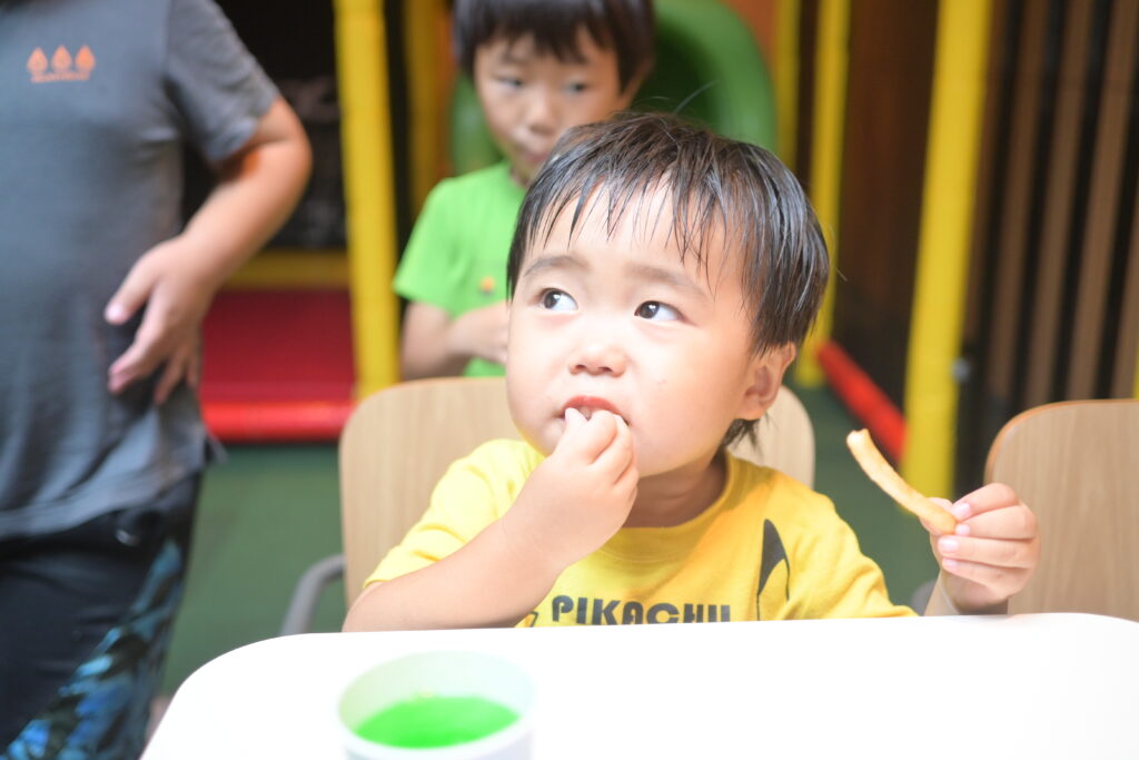 雨でも思いっきり体うごかせるしポテト食べれるしで子どもたちは大満足!