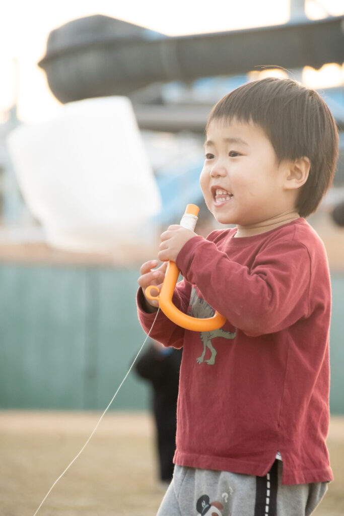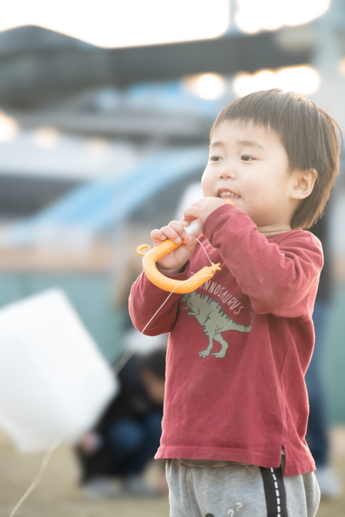 また持ち手があって、糸を伸ばしてあげていくため、ほんとに凧揚げのイメージです。